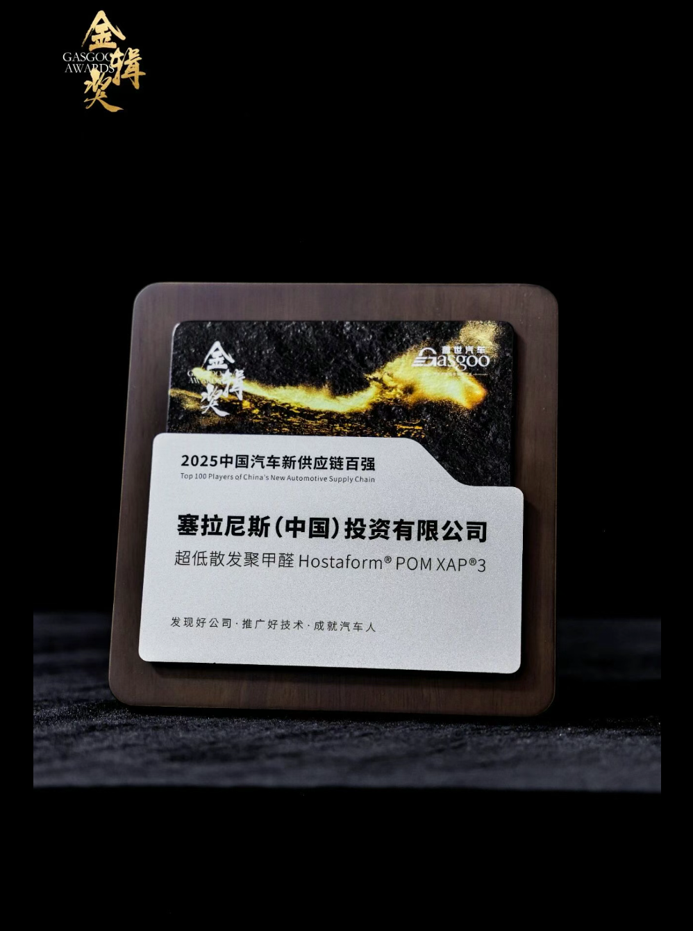 近日,Celanese塞拉尼斯憑借創新材料「超低散發聚甲醛Hostaform? POM XAP?3」,實力登榜由蓋世汽車發起的「2025第七屆金輯獎 · 中國汽車新供應鏈百強」